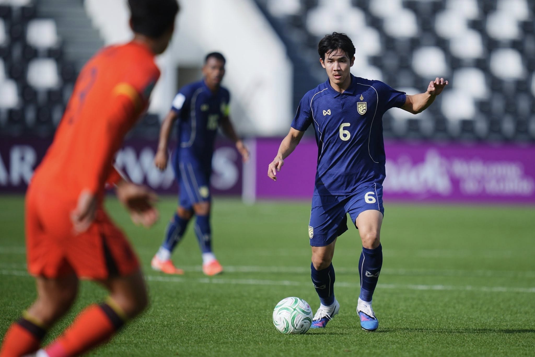 Phút 45+4: Hiệp 1 kết thúc. U23 Thái Lan 0-0 U23 Trung Quốc.