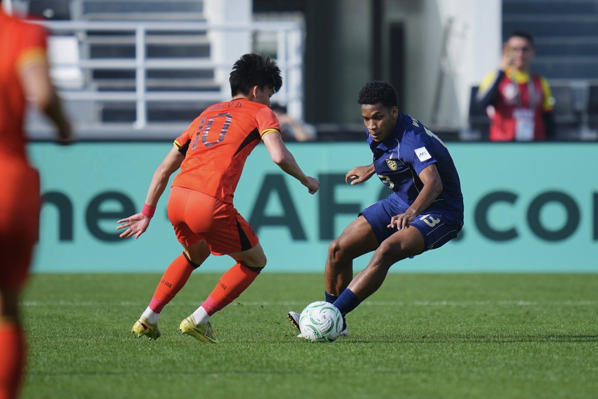 Bước sang hiệp hai, U23 Thái Lan vẫn duy trì thế trận kiểm soát bóng, nhưng hàng phòng ngự của U23 Trung Quốc đã đứng vững. Phút 52, đội bóng xứ Chùa Vàng suýt chút nữa có bàn thắng khi Peng Xiao đánh đầu phản lưới, nhưng thủ môn Li Hao đã kịp cản phá. Sau đó, liên tiếp các cơ hội bị bỏ lỡ, điển hình là tình huống dứt điểm của Iklas ở phút 57 và Zhang Aihui ở phút 65.