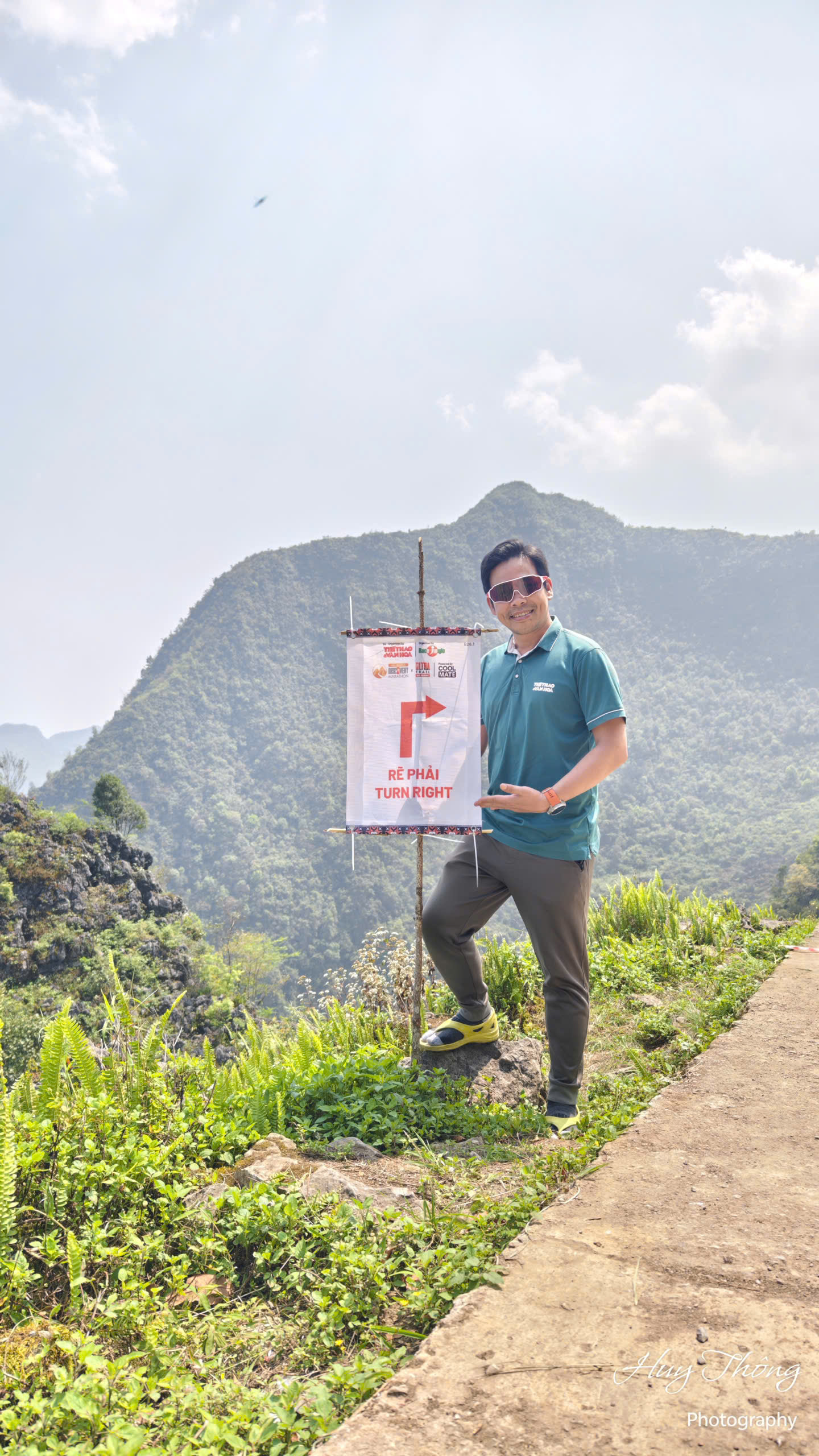 Phóng viên báo Thể thao và Văn hóa đi "check" lại các biển chỉ dẫn đường chạy tại Pả Vi (gần CP8)