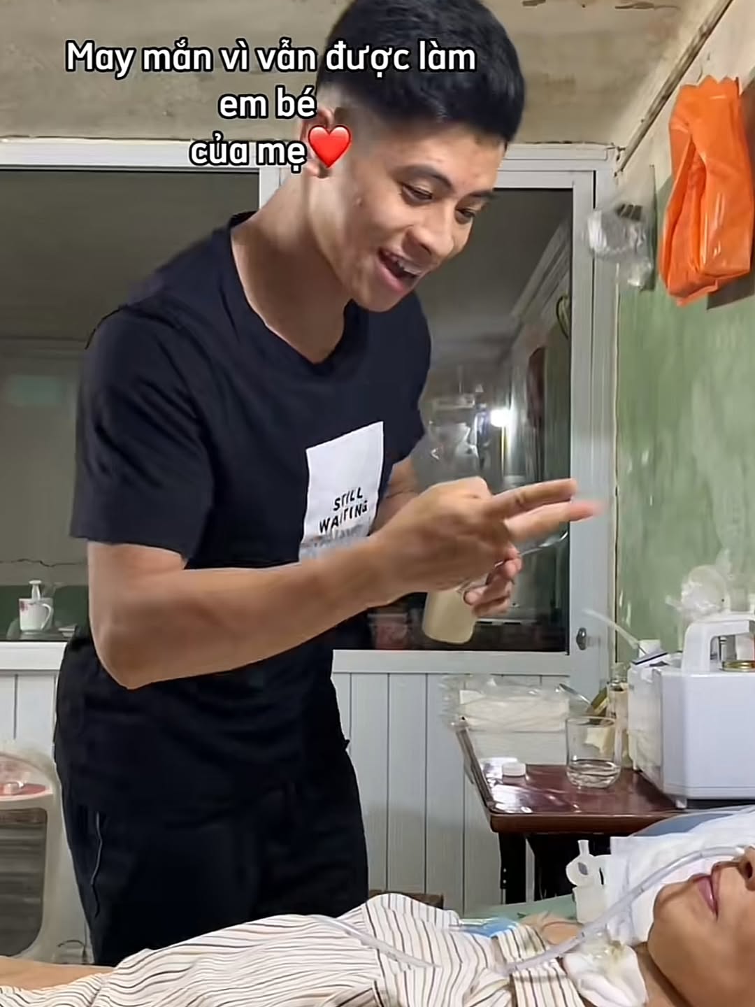 Là con một trong gia đình, Ngô Anh Quân trở thành chỗ dựa duy nhất. Người mẹ 60 tuổi không thể nói, không thể cử động, mọi sinh hoạt đều phụ thuộc vào con trai. Những ngày đầu, việc chăm sóc là chuỗi hỗn loạn và bỡ ngỡ: từ vệ sinh cá nhân, thay đồ, cho ăn, uống thuốc đến việc quan sát từng thay đổi nhỏ trong ánh mắt, nhịp thở của mẹ. Dần dần, tất cả trở thành thói quen, thành kỹ năng, thành một phần cuộc sống.