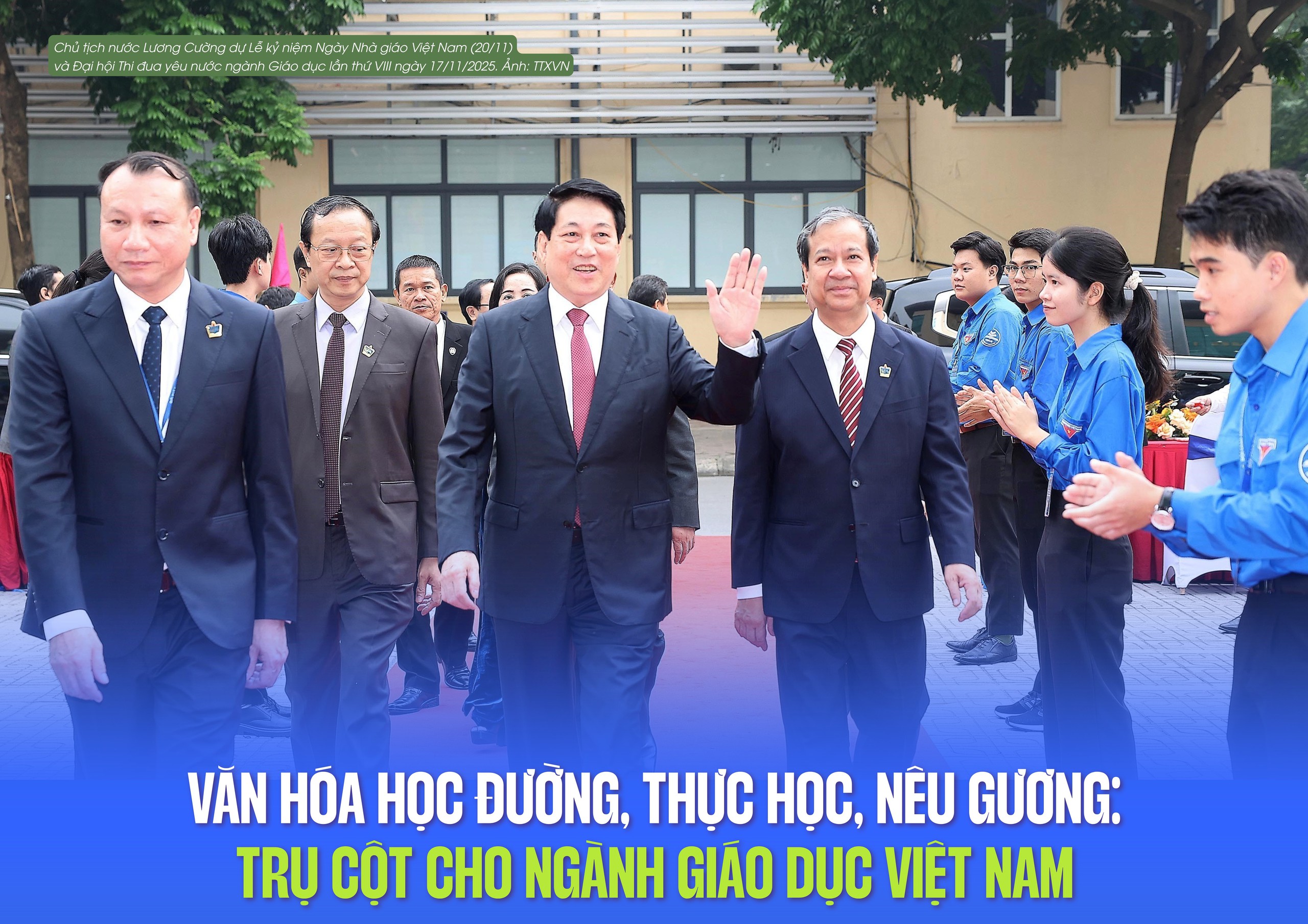 Sáng 17/11/2025, tại Trường Đại học Sư phạm Hà Nội, Chủ tịch nước Lương Cường dự Lễ kỷ niệm Ngày Nhà giáo Việt Nam (20/11) và Đại hội Thi đua yêu nước ngành Giáo dục lần thứ VIII