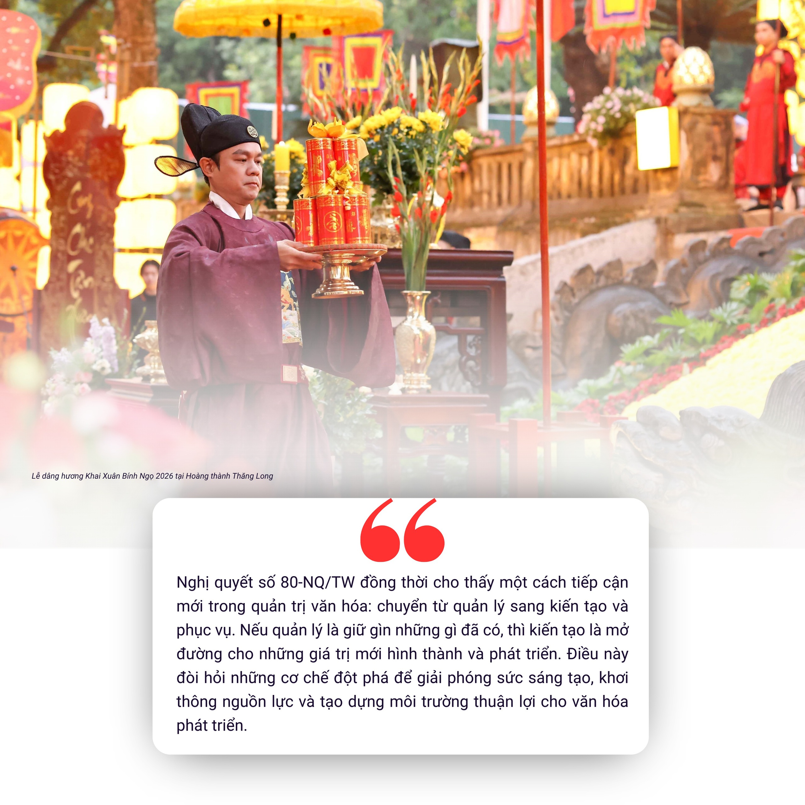 Nghị quyết 80-NQ/TW của Bộ Chính trị về phát triển văn hóa Việt Nam ban hành ngày 7/1/2026 đúng vào thời điểm then chốt khi đất nước bước vào kỷ nguyên vươn mình mạnh mẽ, hướng tới các cột mốc trọng đại: 100 năm thành lập Đảng (2030) và 100 năm thành lập nước (2045).