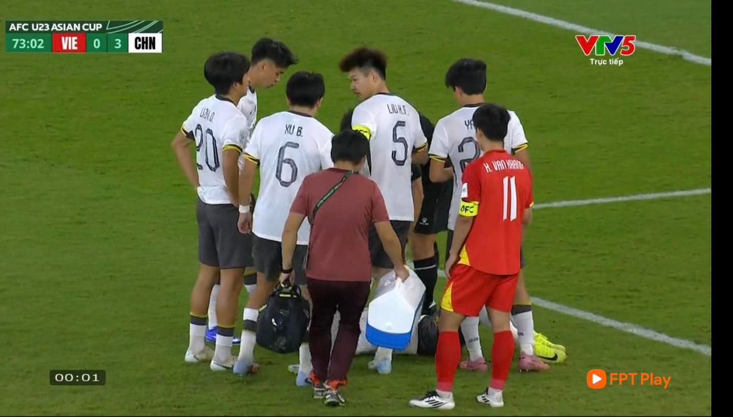 Trong một pha lên bóng của U23 Trung Quốc bên cánh phải, trọng tài đã thổi phạt, thậm chí phạt thẻ vàng trung vệ Nhật Minh vì cho rằng đã phạm lỗi với số 9 của U23 Trung Quốc là Baihelamu.