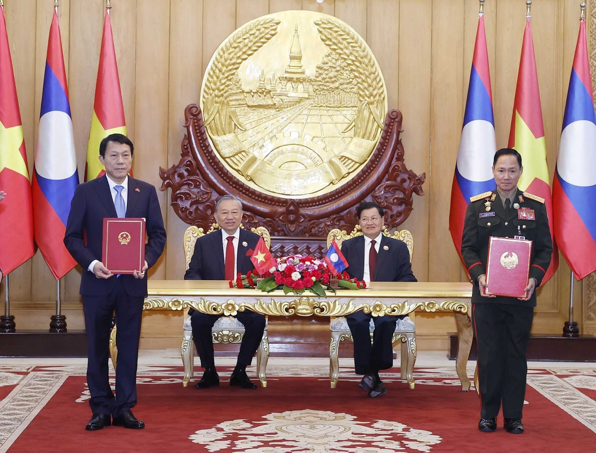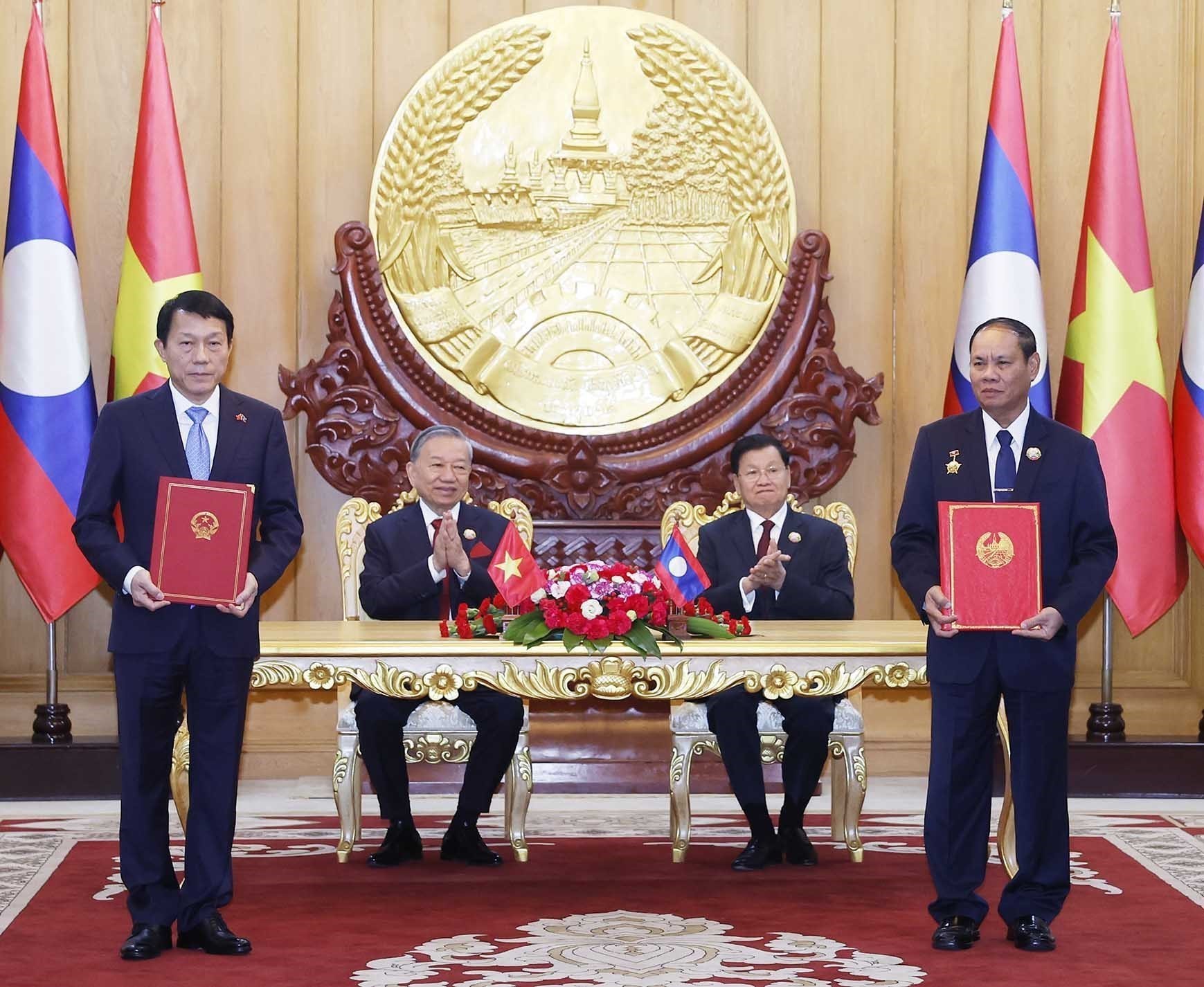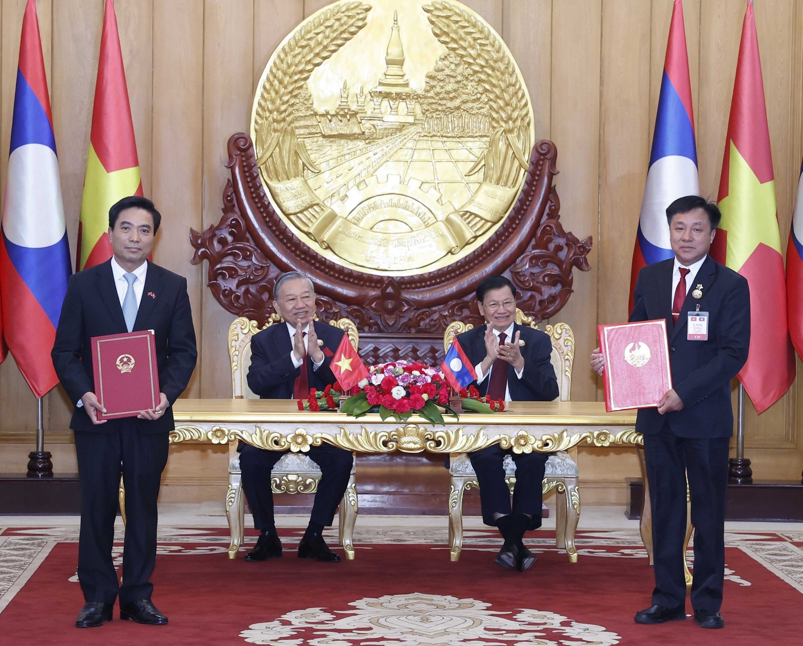 Sáng 1/12/2025, tại thủ đô Vientiane, ngay sau hội đàm chính thức, Tổng Bí thư Tô Lâm và Tổng Bí thư, Chủ tịch nước Lào Thongloun Sisoulith chứng kiến lễ trao các văn kiện hợp tác giữa hai nước