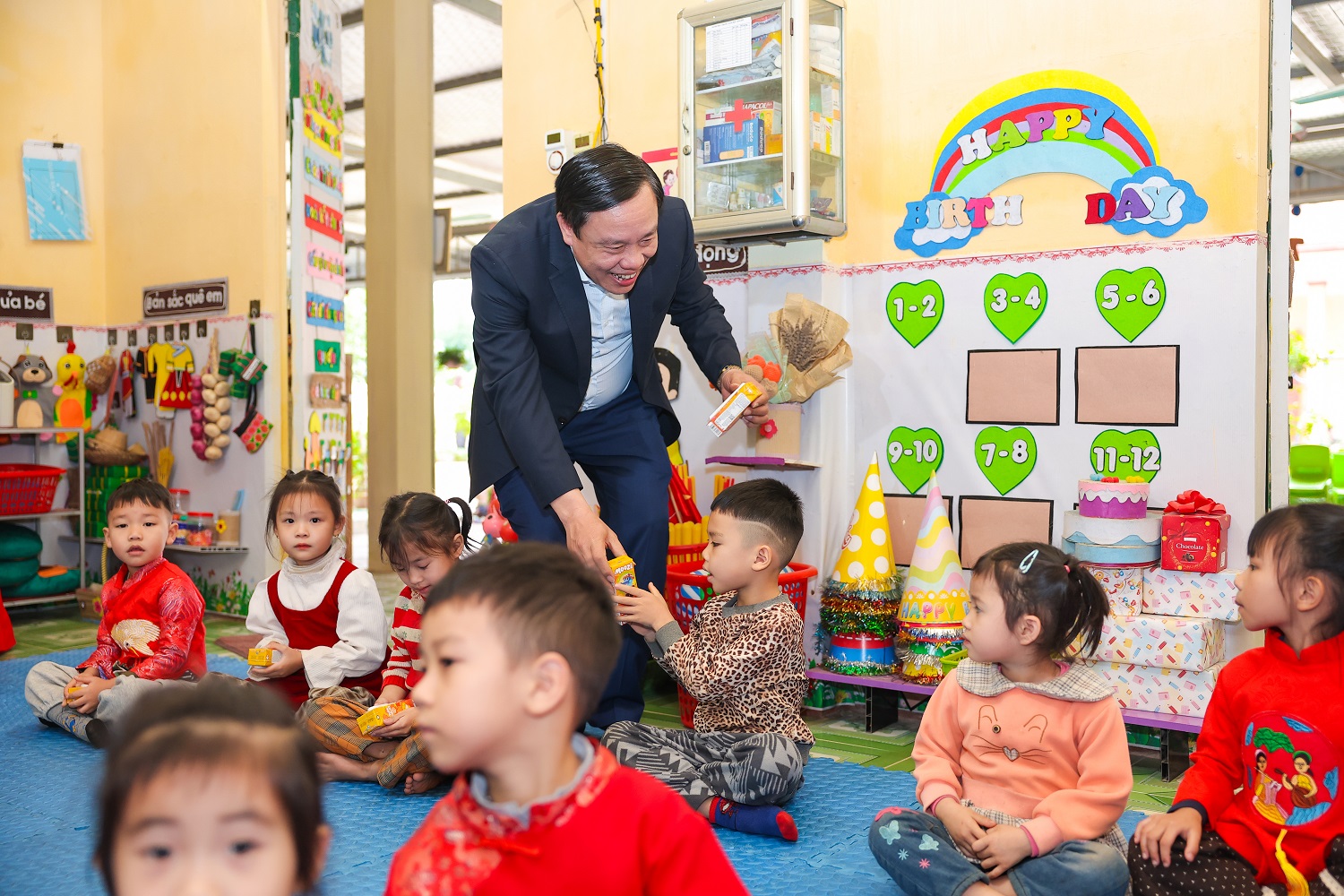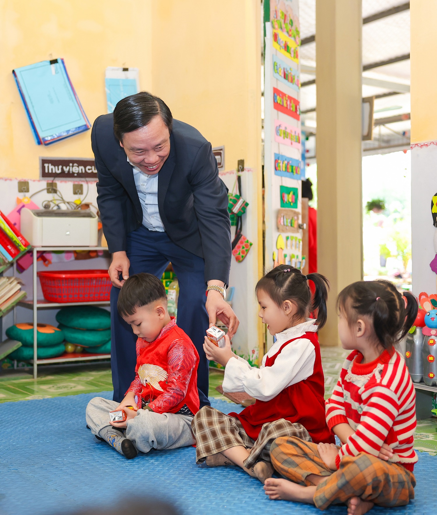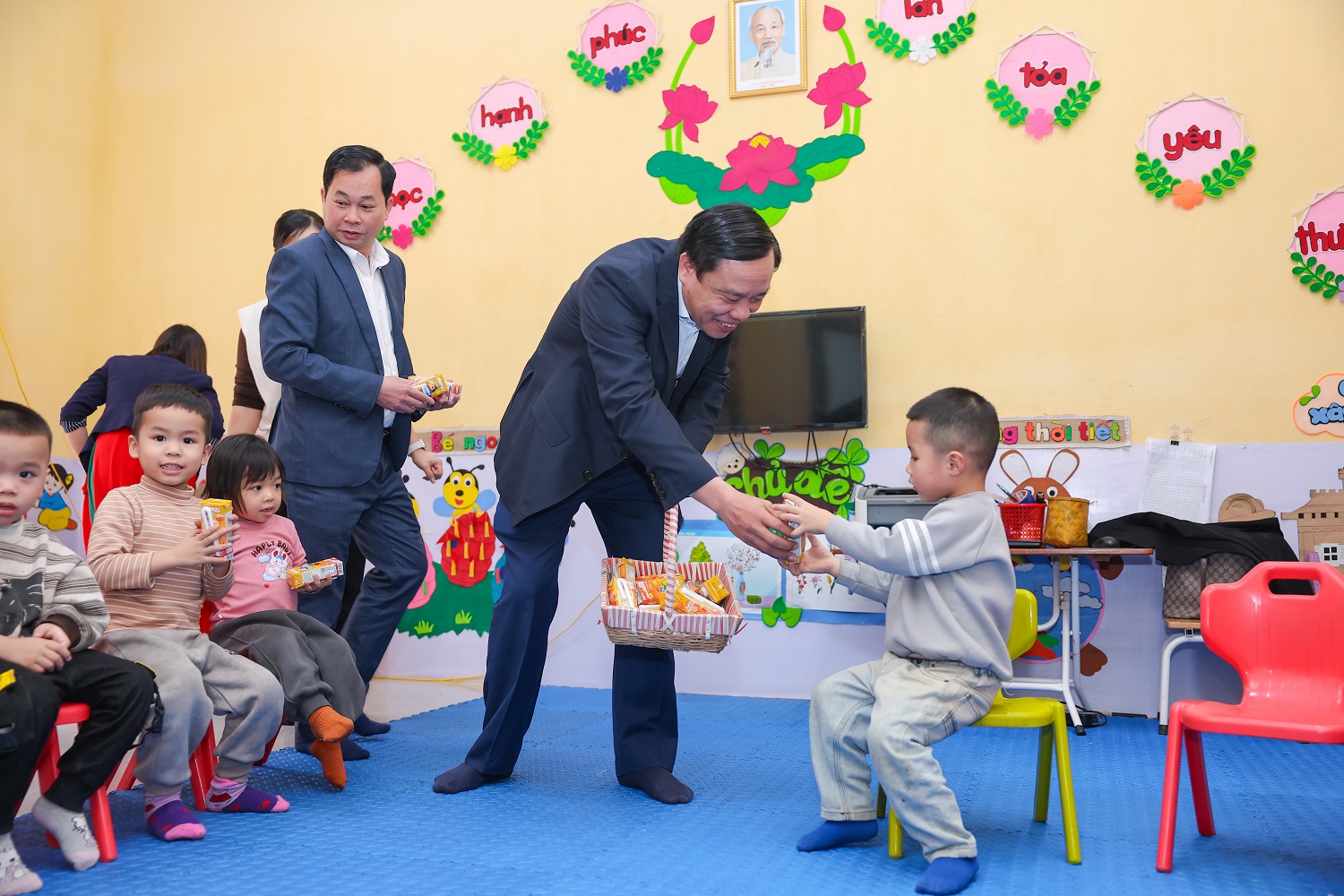 Nhà báo Nguyễn Thiện Thuật, Tổng biên tập báo Thể thao và Văn hóa tặng quà cho các em nhỏ tại điểm Trường mầm non Khe Trang (thuộc Trường Mầm non An Bình)