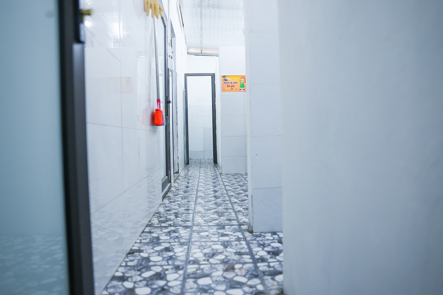 Khu vệ sinh mới được ốp gạch men sáng bóng, có hệ thống nước sạch, đèn chiếu sáng và quan trọng nhất là kín gió, an toàn tuyệt đối