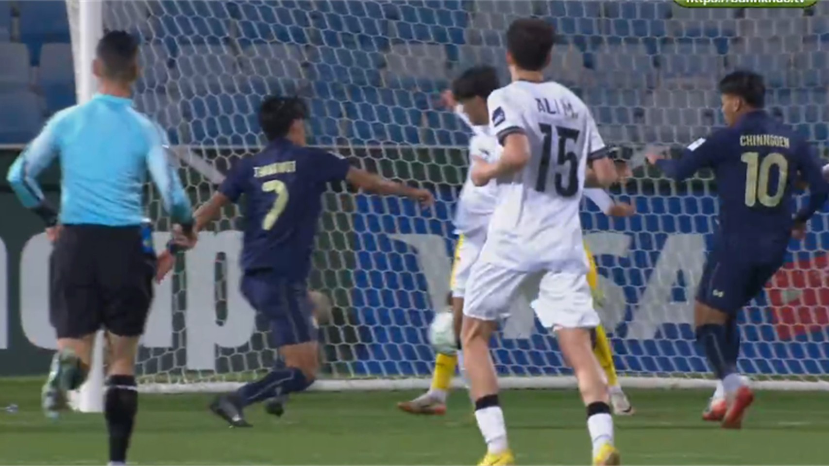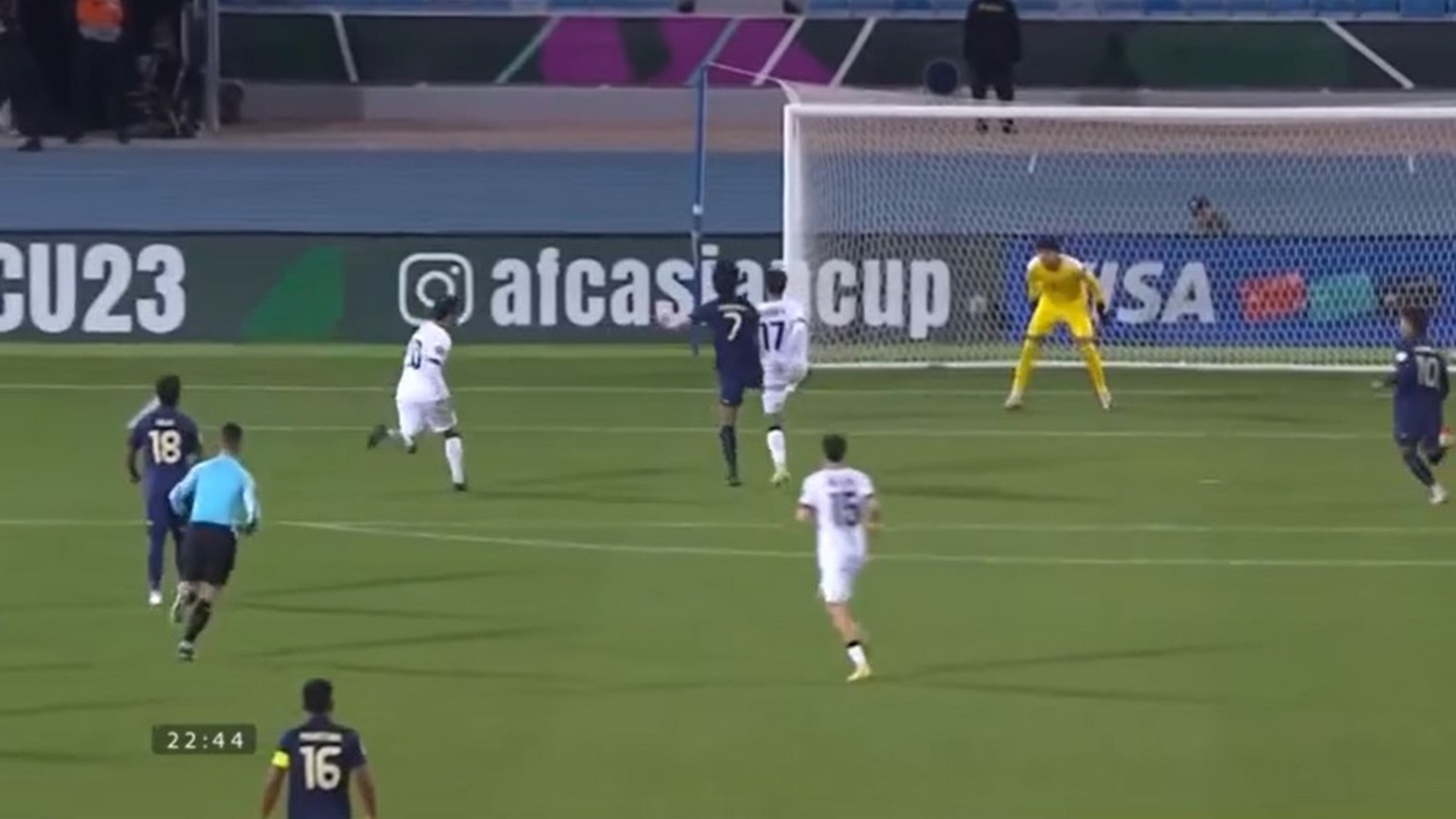 Phút 22: KHÔNG VÀO! Mustafa Nawaf tung ra đường chuyền ấn tượng, nhưng không có đồng đội nào tung ra cú dứt điểm khiến cơ hội mở tỷ số của U23 Iraq bị bỏ lỡ.