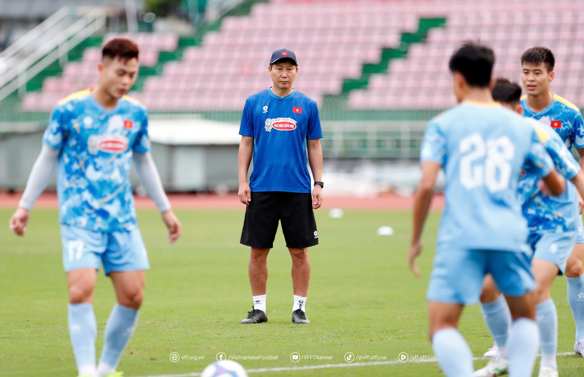 HLV Kim Sang Sik giao nhiệm vụ cho đội tuyển Việt Nam phải giữ sạch lưới trước Nepal.Ảnh: VFF