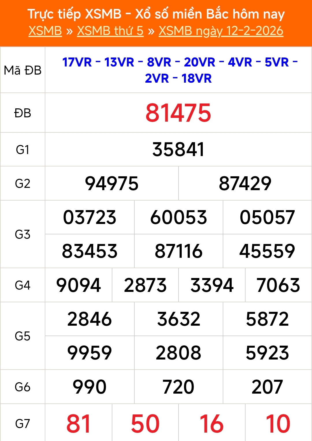 Kết quả Xổ số miền Bắc hôm nay ngày 12/2/2026