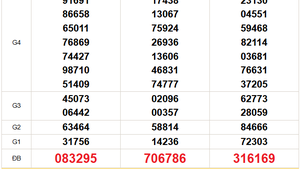 Kết quả xổ số miền Nam có 9 giải (từ giải ĐB đến giải Tám) bao gồm 18 dãy số, tương đương với 18 lần quay thưởng.