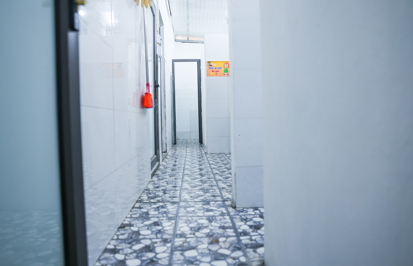 Khu vệ sinh mới được ốp gạch men sáng bóng, có hệ thống nước sạch, đèn chiếu sáng và quan trọng nhất là kín gió, an toàn tuyệt đối