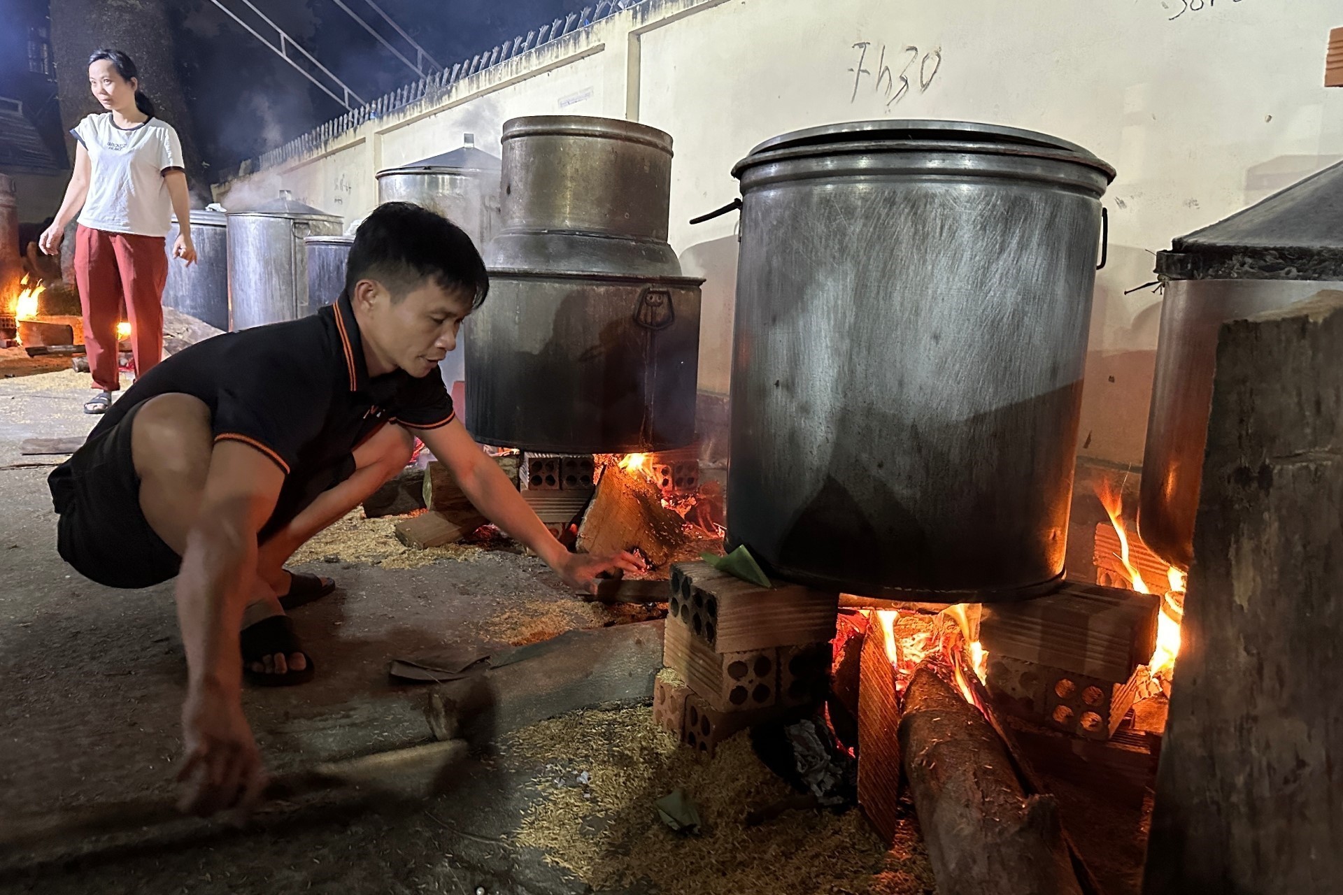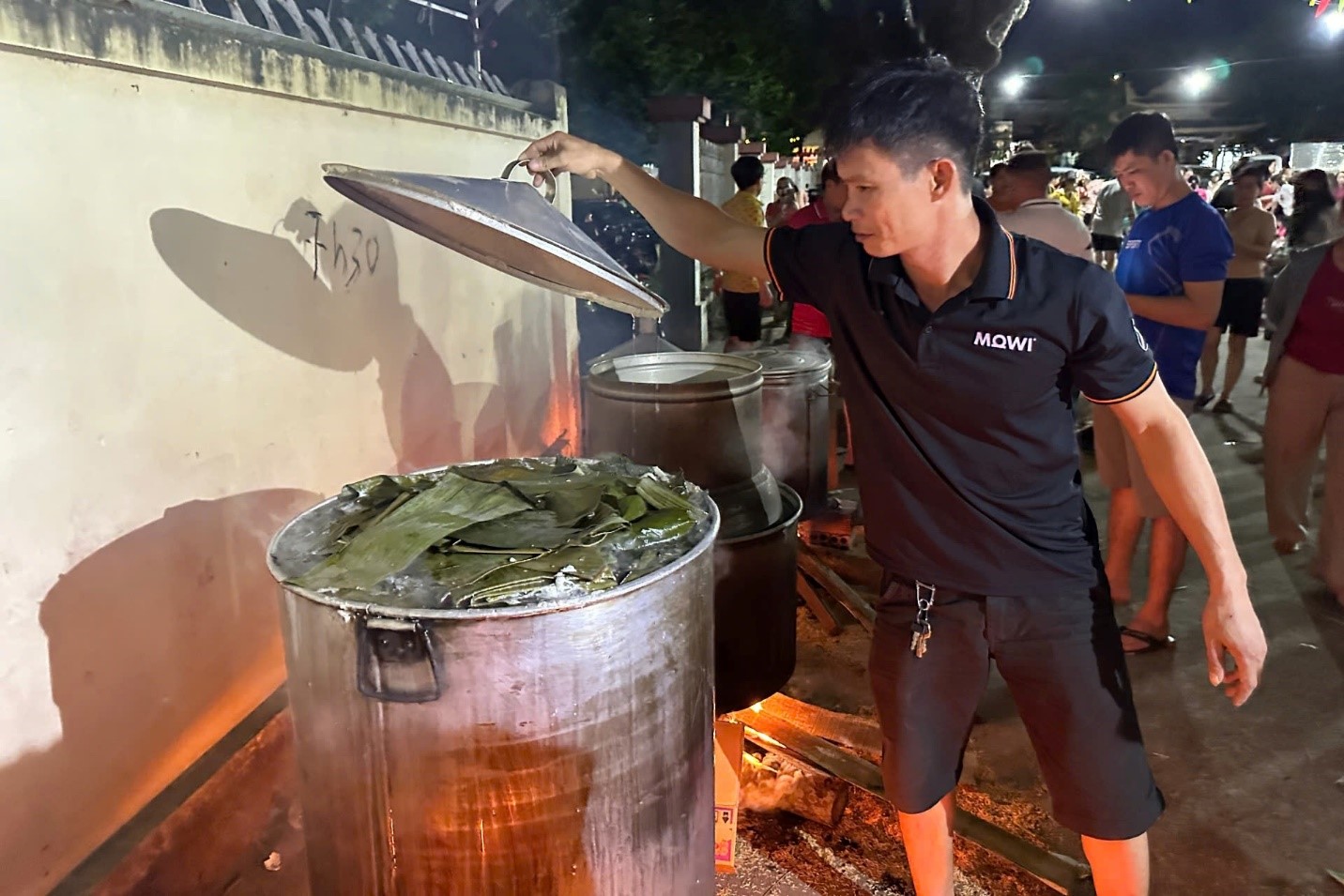 Trước đó, trong đêm 22/11, cả trăm người đã có mặt tại đây, liên tục làm việc, người rửa lá, người vo gạo, người gói bánh, nhóm khác chẻ củi, nhóm phân loại thùng hàng. Không cần ai nhắc nhở, mỗi người tự tìm một việc để góp sức. Không khí khẩn trương nhưng ấm áp tình người.