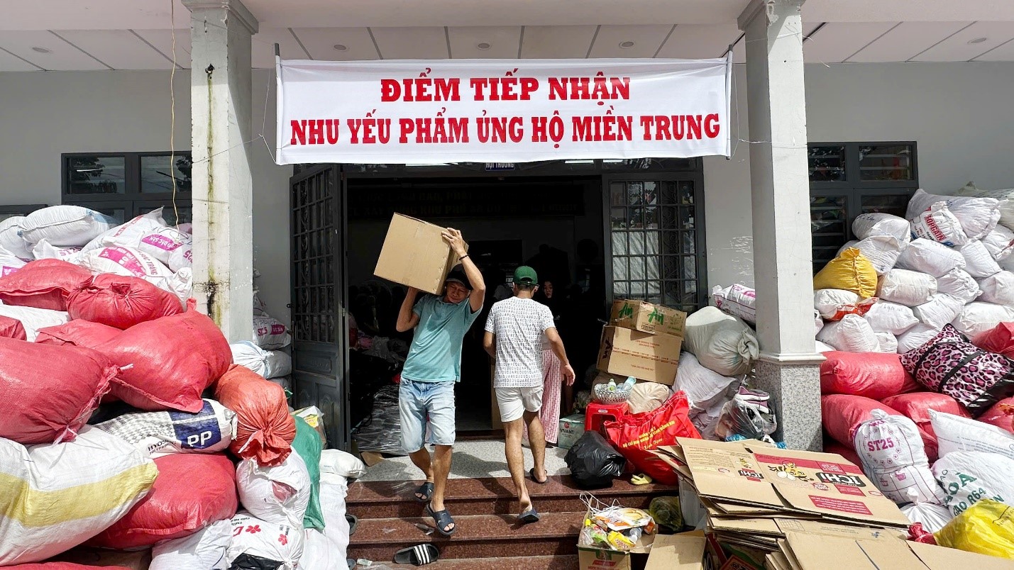 Hàng nghìn tấn hàng hóa được người dân phường Trảng Dài (Đồng Nai) tập hợp để gửi đi cứu trợ vùng lũ