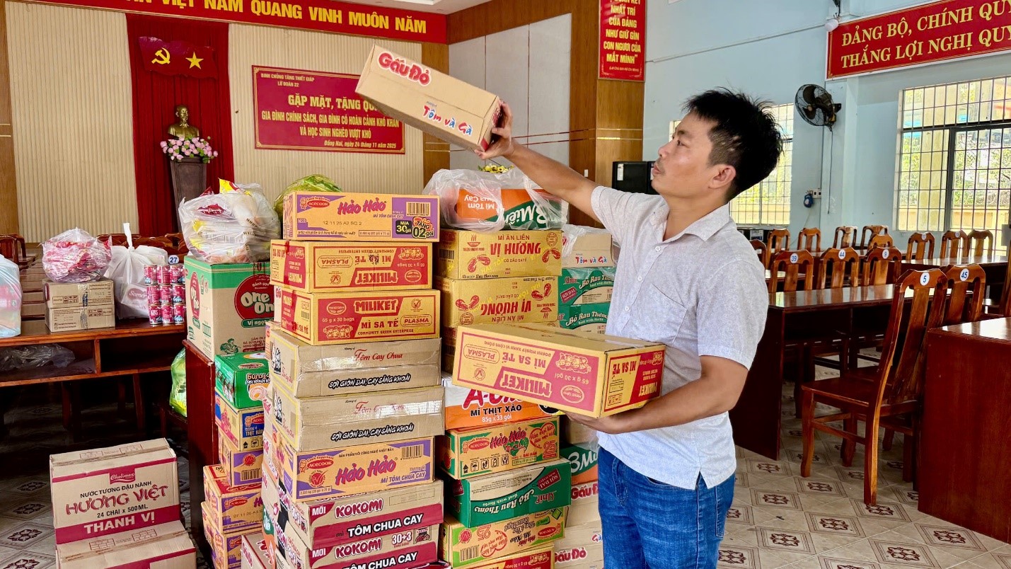 "Sáng nay, đoàn đã tới đoàn đã tới điểm cứu trợ đầu tiên tại tỉnh Đắk Lắk, chỉ mong số hàng hóa được chuyển đến tay người dân được nhanh nhất", anh Tâm chia sẻ trong sự phấn khởi xen lẫn xúc động.