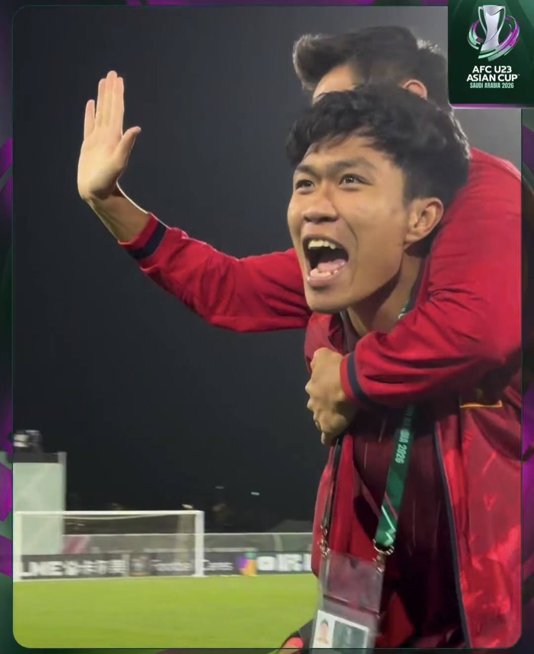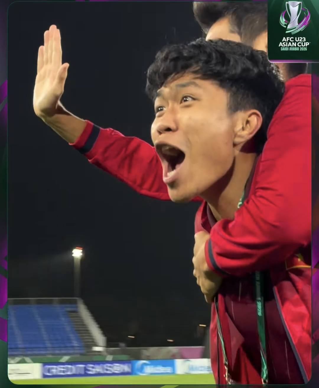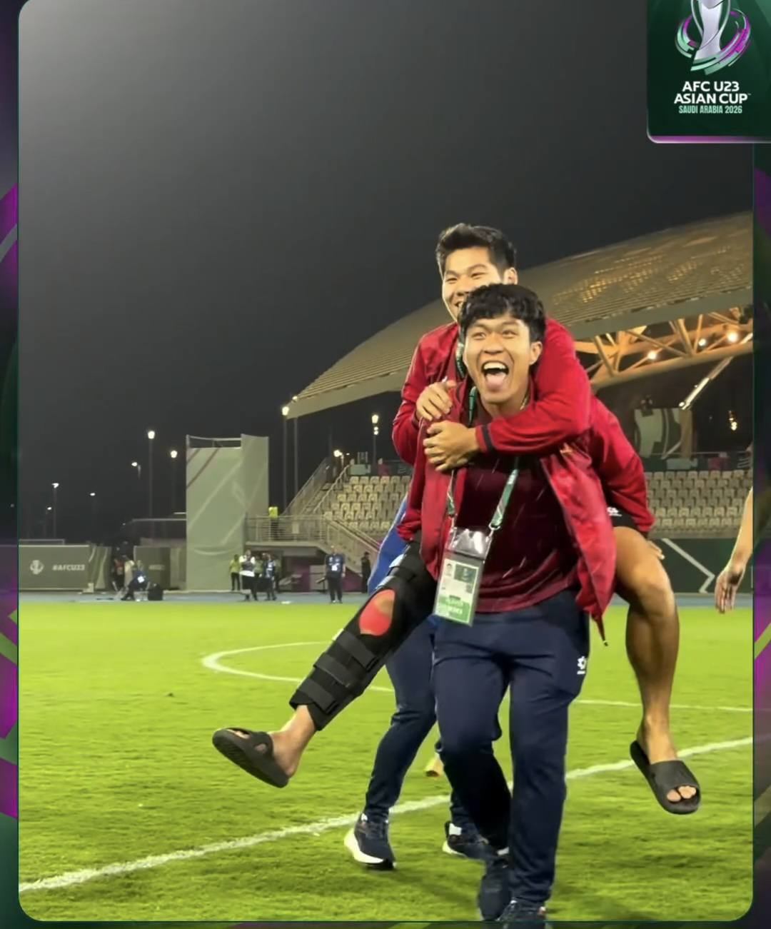 Sau khi màn đá luân lưu kết thúc với pha đá 11m thành công của Thanh Nhàn, các cầu thủ U23 Việt Nam tràn ra ăn mừng, trong đó có 2 người không thể thi đấu là hậu vệ Lý Đức và Hiểu Minh.